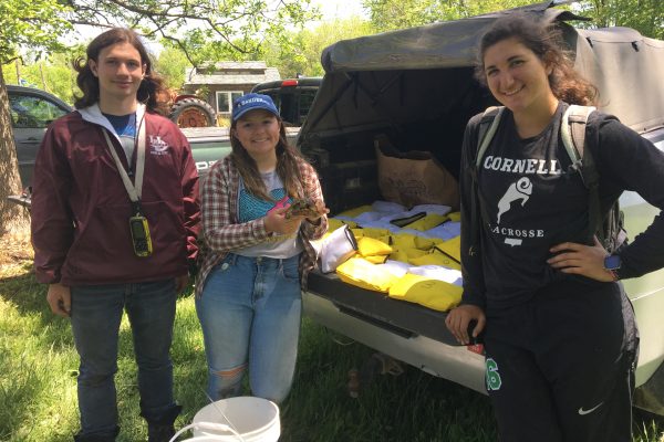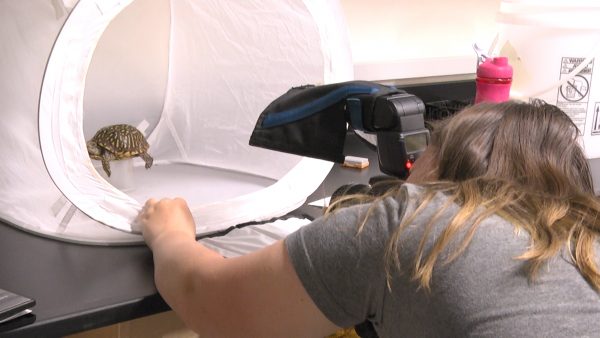 Three biology student researchers received some help this summer from a team of turtle-finding dogs.This year marked the 16th year of the research on the ornate box turtle, which is native in Iowa. It’s also a threatened species due to environmental changes, predators, and poaching.For the past several years the research has focused on discovering more about the turtles since very little is known about the species. Specifically, the research is digging deeper into understanding why the box turtles are so colorful.The goal of the project is to determine what the males do that are most reproductively successful.To do that, the researchers need to gather and study as much of the turtle population as possible. The team has used drift fences to capture turtles for a short period of time before returning them to the wild. This year, they were able to work with Montana’s John Rucker and his team of turtle-finding dogs.“I usually run my dogs about three or four hours in the morning when it’s cool and the turtles are moving and there’s turtle scent on the ground,” Rucker said. “Turtles actually leave a very minute scent trail on the grass, and my dogs lock in on that trail and they are like bloodhounds, they find it and very gently pick it up and bring it back to me.”Lizzy Ott ’21, John Regis ’20, and Lily Ullenius ’20 are working on the research project this summer. They enjoyed watching the dogs find 42 turtles in one day. That’s about twice as many as the 2018 team found in the entire summer. (Left to right) John Regis ’20, Lily Ullenius ’20, and Lizzy Ott ’21“It was so much fun,” Ott said. “It’s amazing they can do their thing and sniff out these turtles from wherever they are. We now have a ton of turtles to process which is really great.”The students take the turtles back to the lab to measure, photograph, and collect DNA samples. The DNA will help build the family tree. The researchers use GPS devices to mark each turtle’s location and the turtles are returned right back to where they found them within a day or two. The photographs are important because the researchers wants to create a genetic story for all of the turtles. “Once we have the blood work for the genetics, we can figure out who it is related to and how many offspring it has had. So we might be able to figure out are these brighter turtles, the ones who are having more offspring or is it, maybe, the more dull-colored turtles,” Ullenius said.The team is also using a UV-Vis reflectance spectrometer, studying the reptiles’ patterns beyond what the human eye can see. “We are looking to see if the color pattern has to do with reproductive success,” Regis said. “The UV spectrum is another way for us to analyze that. We just hold the spectrometer up against their shell or up against their head. Then we copy the data and put it into a spreadsheet, so it really only takes a few seconds.”Lily Ullenius ’20 taking photos of turtlesThe more data the team can collect, the more answers they will have. They hope their work will help discover more about this poorly understood species, potentially finding answers to keep the threatened population growing. Rucker says this research team is lucky too because they have a great research area in Johnson County.“I know all of the sites,” Rucker said. “I have worked my dogs on the Wisconsin ornate box turtle sites, I have worked them on all of the Illinois ornate box turtle tracts. This one right here in Iowa is the best in the Midwest, in my opinion.”