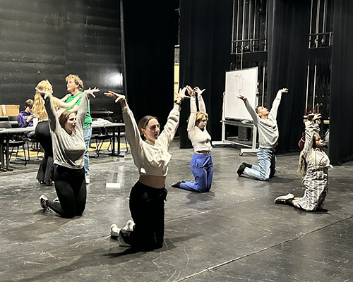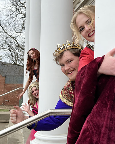 This all-student production involves a cast of 16 with 36 students in crew and shop positions, including one student costume designer. The director says this play lets students learn classical conventions while giving them permission to break those traditional constructs.